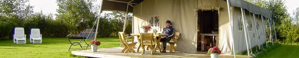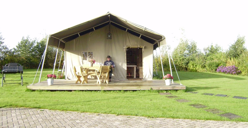 Auf Camping Feld 2 finden Sie unsere luxuriös eingerichtete Safarizelt, das auch als Beachlodge bekannt ist. Glamping ist nämlich der derzeit heißeste Urlaubstrend und das bedeutet Camping und Glamour in einem. Campingromantik - dann aber mit dem Luxus, den Sie von zu Hause gewohnt sind!